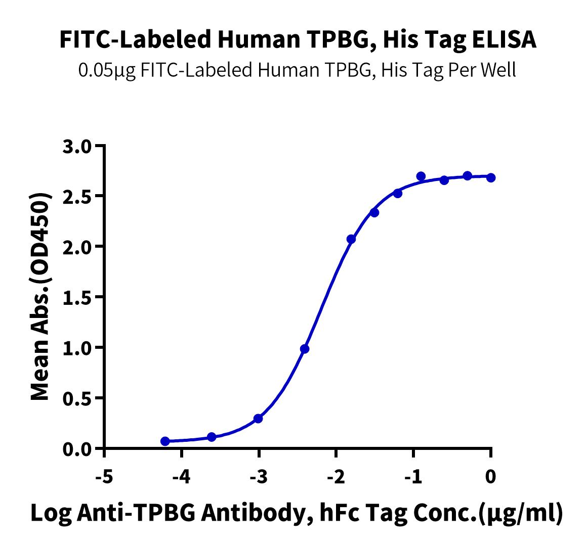 Recombinant FITC-Labeled Human TPBG/5T4 Protein is expressed from HEK293 with His tag and Avi tag at the C-Terminus.It contains Ser32-Ser355 [Accession | Q13641-1].