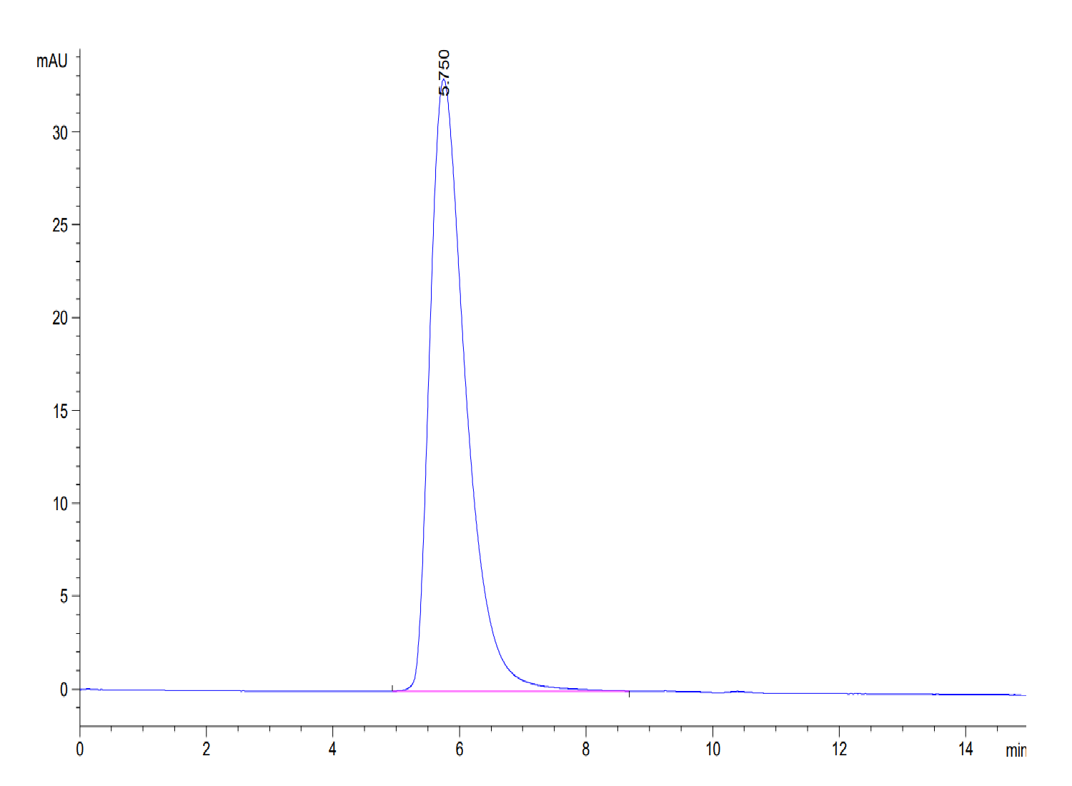 The protein has a predicted MW of 86.5 kDa. Due to glycosylation, the protein migrates to 95-110 kDa based on Bis-Tris PAGE result.