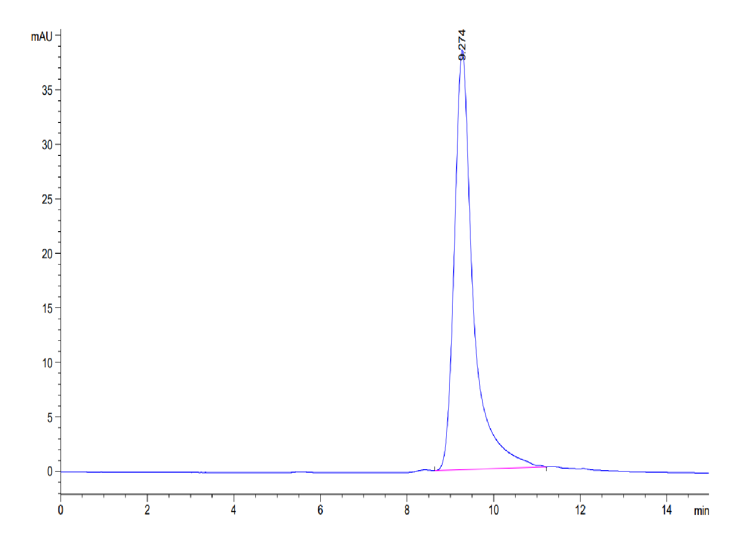 The protein has a predicted MW of 28.4 kDa. Due to glycosylation, the protein migrates to 35-50 kDa based on Bis-Tris PAGE result.