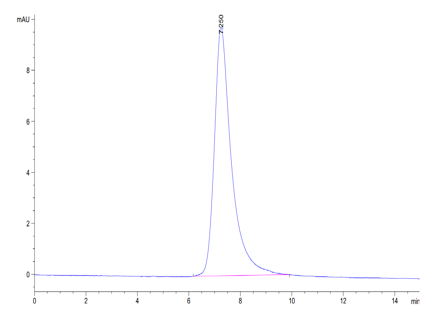 The protein has a predicted MW of 18.1 kDa. Due to glycosylation, the protein migrates to 35-40 kDa based on Bis-Tris PAGE result.