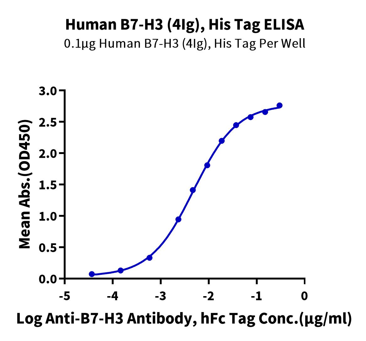 B7-H3, a member of the B7 family of immunomodulatory molecules, is overexpressed in a wide range of solid cancers.B7-H3 binds to activated T cells via an as yet unidentified receptor. In assays using sub-optimal amount so anti-CD3 stimulation, 2Ig‑B7‑H3 enhances T cell proliferation, T cell interferon-gamma (IFN-gamma) production, and cytotoxic T cells induction.