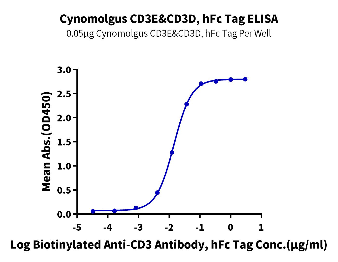 Recombinant Cynomolgus CD3E&CD3D/CD3 epsilon&CD3 delta Protein is expressed from HEK293 with hFc (IgG1) tag at the C-Terminus of CD3E and CD3D. It contains Gln22-Asp117 (CD3E) and Phe22-Ala105 (CD3D) [Accession | Q95LI5.2 (CD3E)&Q95LI8 (CD3D)].