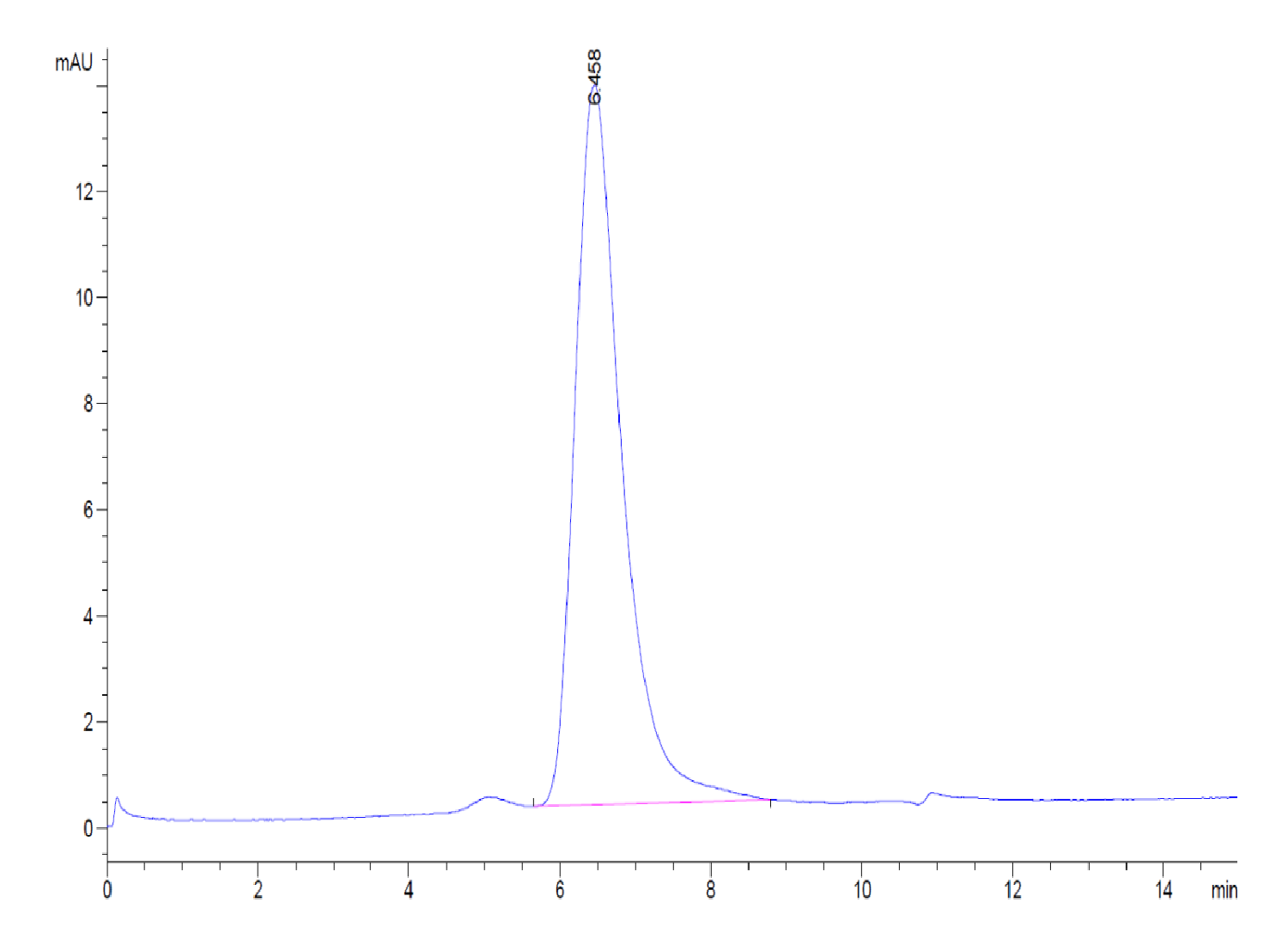The protein has a predicted MW of 41.3 kDa. Due to glycosylation, the protein migrates to 68-95 kDa based on Bis-Tris PAGE result.