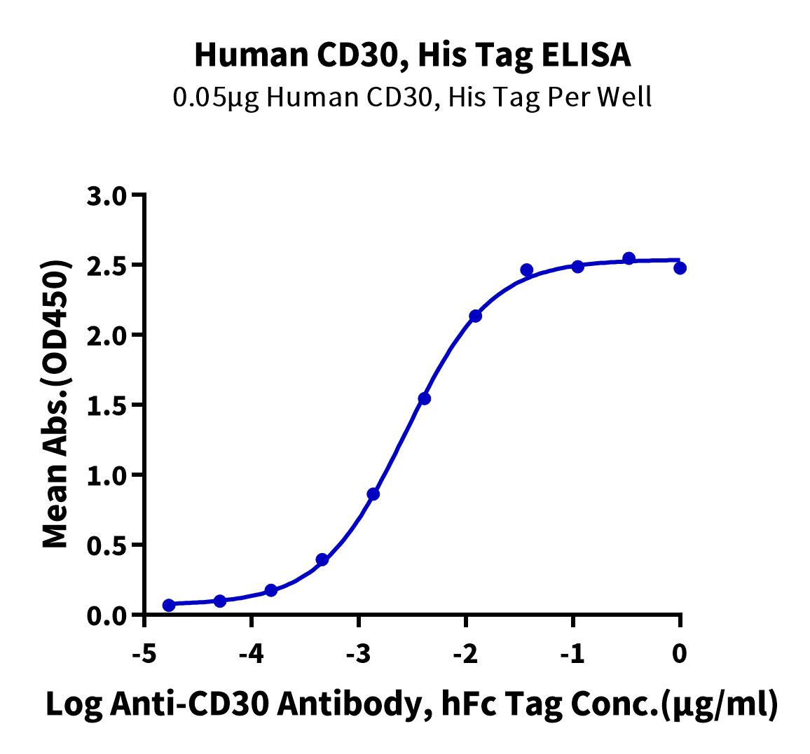 Recombinant Human CD30/TNFRSF8 Protein is expressed from HEK293 with His tag and Avi tag at the C-Terminus.It contains Phe19-Lys379 [Accession | P28908-1].