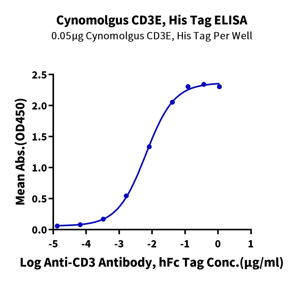 Recombinant Cynomolgus CD3E/CD3 Epsilon Protein is expressed from HEK293 with His tag at the C-Terminus.It contains Gln22-Asp117 [Accession | Q95LI5].