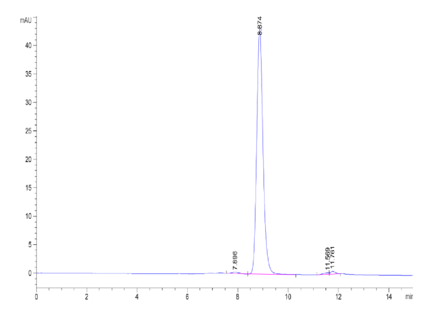 The protein has a predicted MW of 75.6 kDa. Due to glycosylation, the protein migrates to 76-80 kDa based on Bis-Tris PAGE result. |
