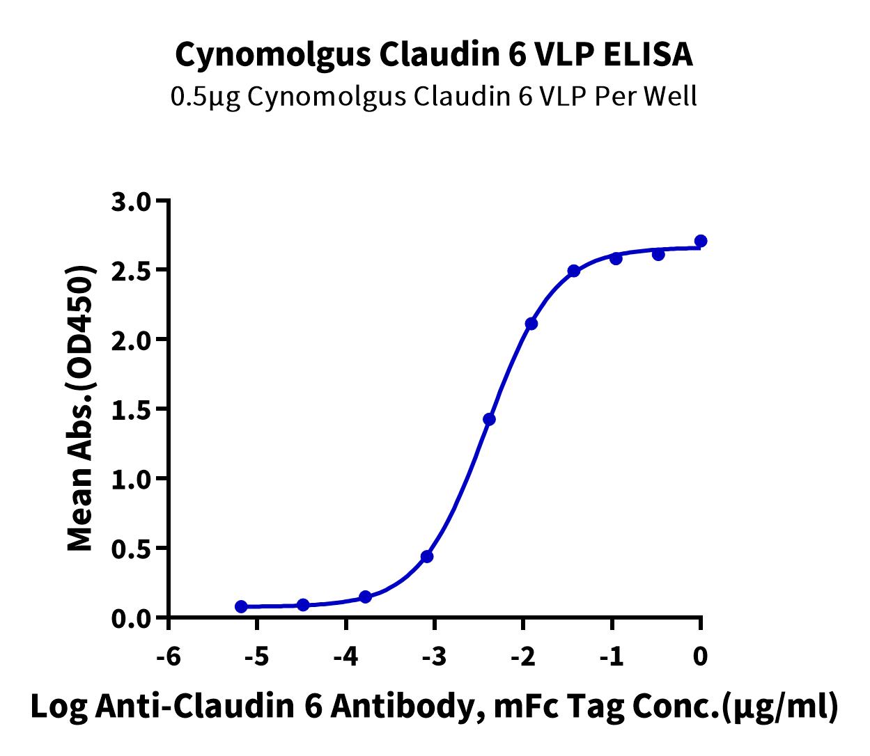 Recombinant Cynomolgus Claudin 6 VLP is expressed from HEK293.It contains Met1-Val220 (It may have cross reaction with anti-His antibody) [Accession | G7Q0B0].