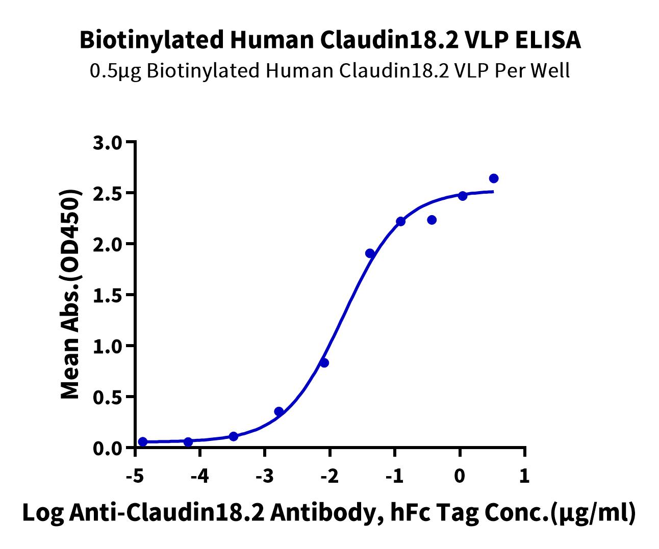 Recombinant Biotinylated Full length Human Claudin 18.2 VLP is expressed from HEK293.It contains Met1-Val261 (It may have cross reaction with anti-His antibody) [Accession | P56856-2].