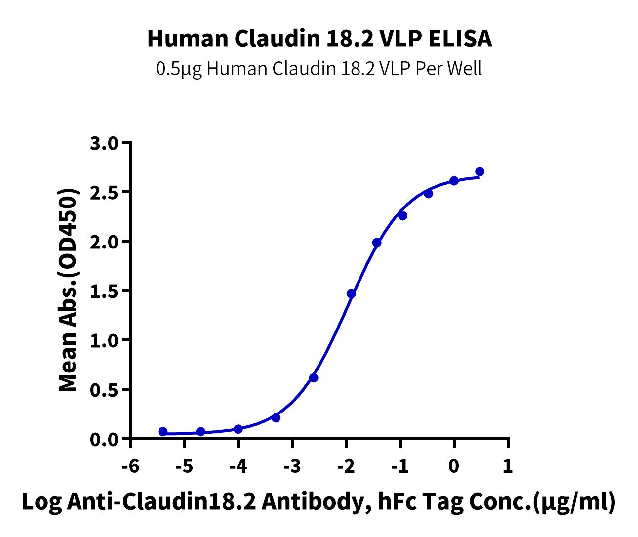 Human Claudin 18.2 VLP is expressed from HEK293. It contains Met1-Val261 (It may have cross reaction with anti-His antibody) [Accession | P56856-2].