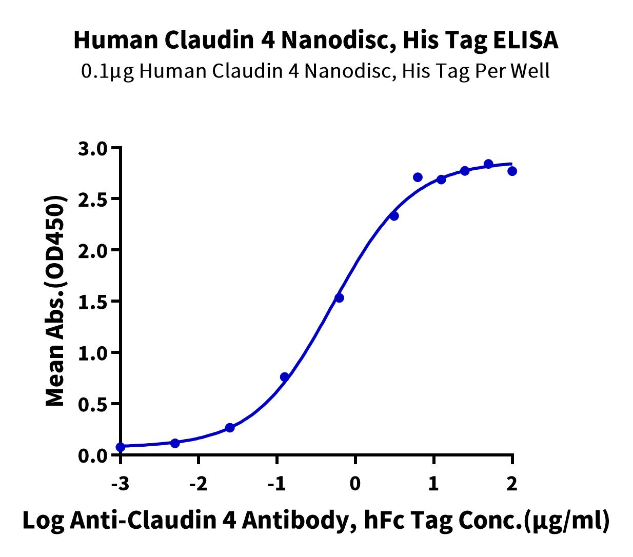 Recombinant Human Claudin 4 Nanodisc is expressed from HEK293 with His tag at the C-terminus.It contains Met1-Val209 [Accession | O14493].