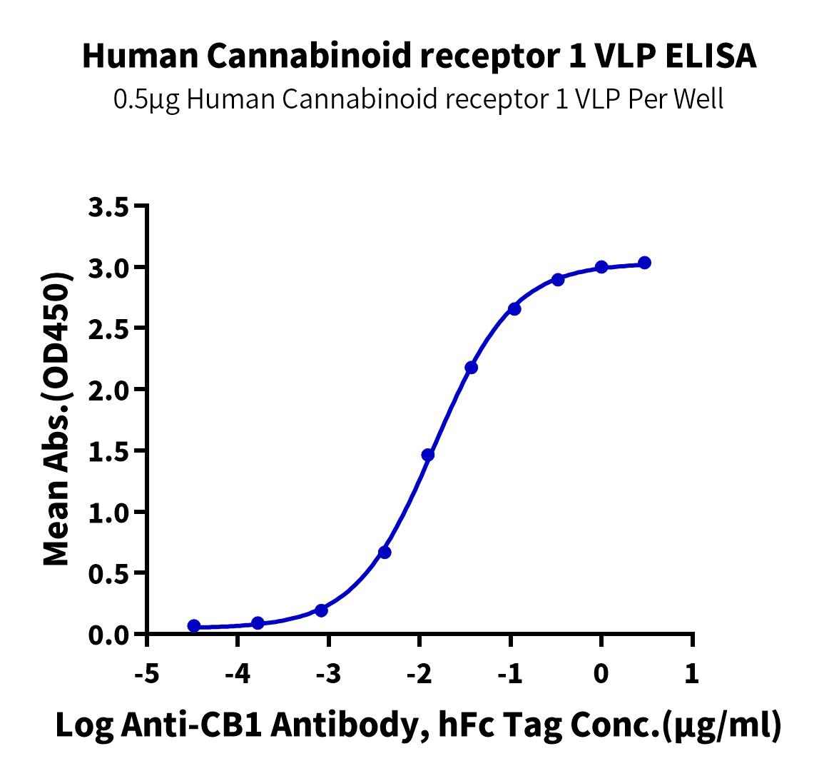 Recombinant Human Cannabinoid receptor 1 VLP is expressed from HEK293.It contains Met1-Leu472 (It may have cross reaction with anti-His antibody) [Accession | P21554-1].