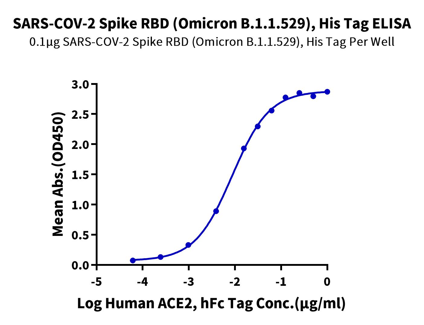 Recombinant SARS-COV-2 Spike RBD (Omicron B.1.1.529) Protein is expressed from HEK293 with His tag at the C-Terminus.It contains Arg319-Phe541(G339D, S371L, S373P, S375F, K417N, N440K, G446S, S477N, T478K, E484A, Q493R, G496S, Q498R, N501Y, Y505H) [Accession | QHO60594.1].