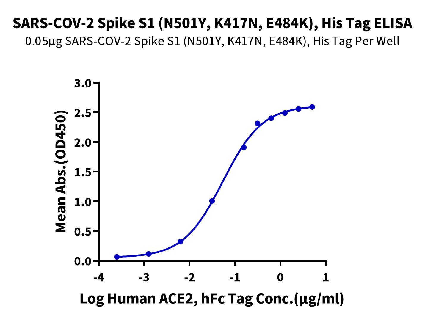 Recombinant SARS-COV-2 Spike S1 (N501Y,K417N,E484K) Protein is expressed from HEK293 with His tag at the C-Terminus.It contains Val16-Arg685(N501Y,K417N,E484K) [Accession | YP_009724390.1].