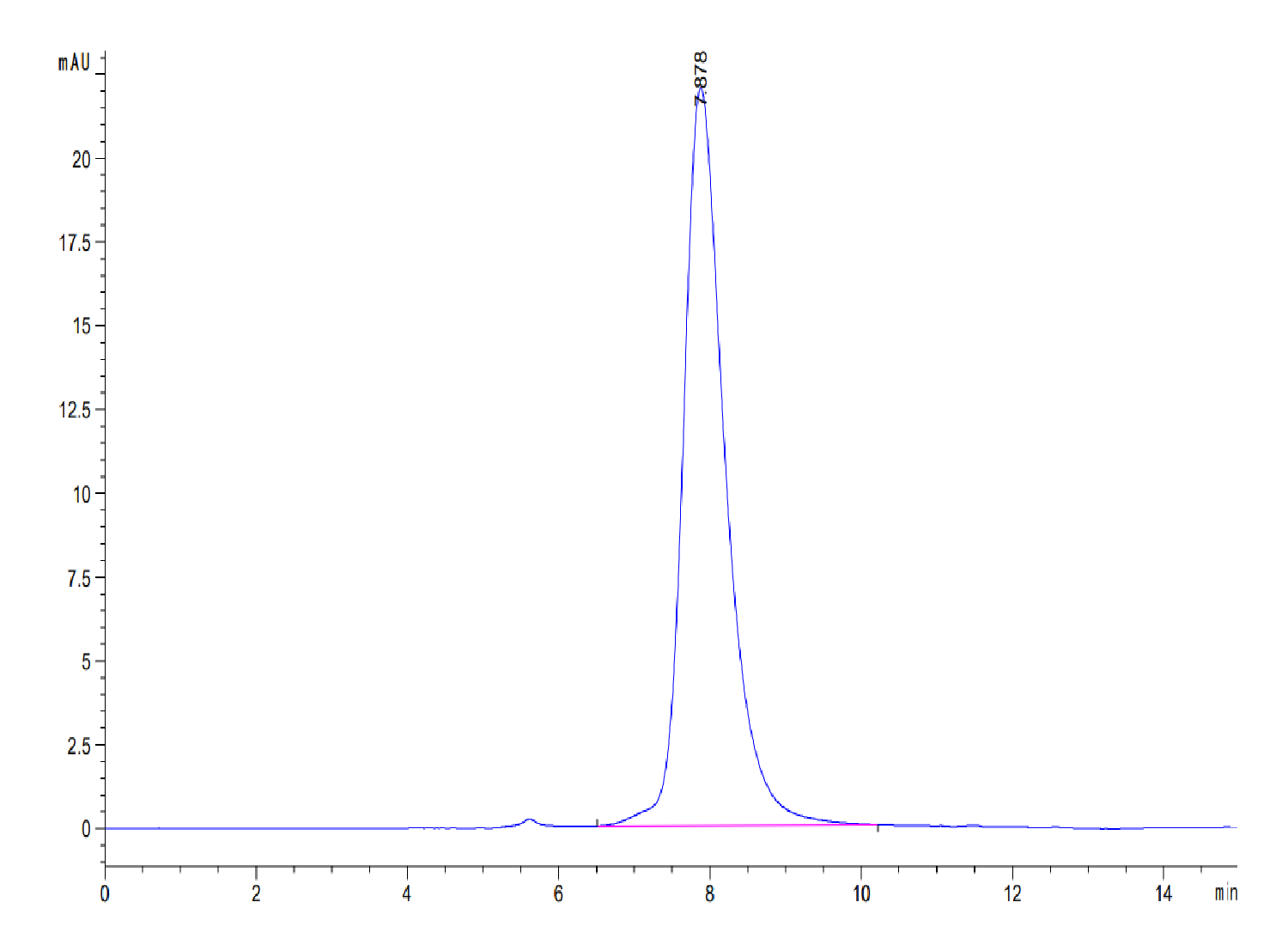 The protein has a predicted MW of 75.9 kDa. Due to glycosylation, the protein migrates to 90-130 kDa based on Bis-Tris PAGE result.
