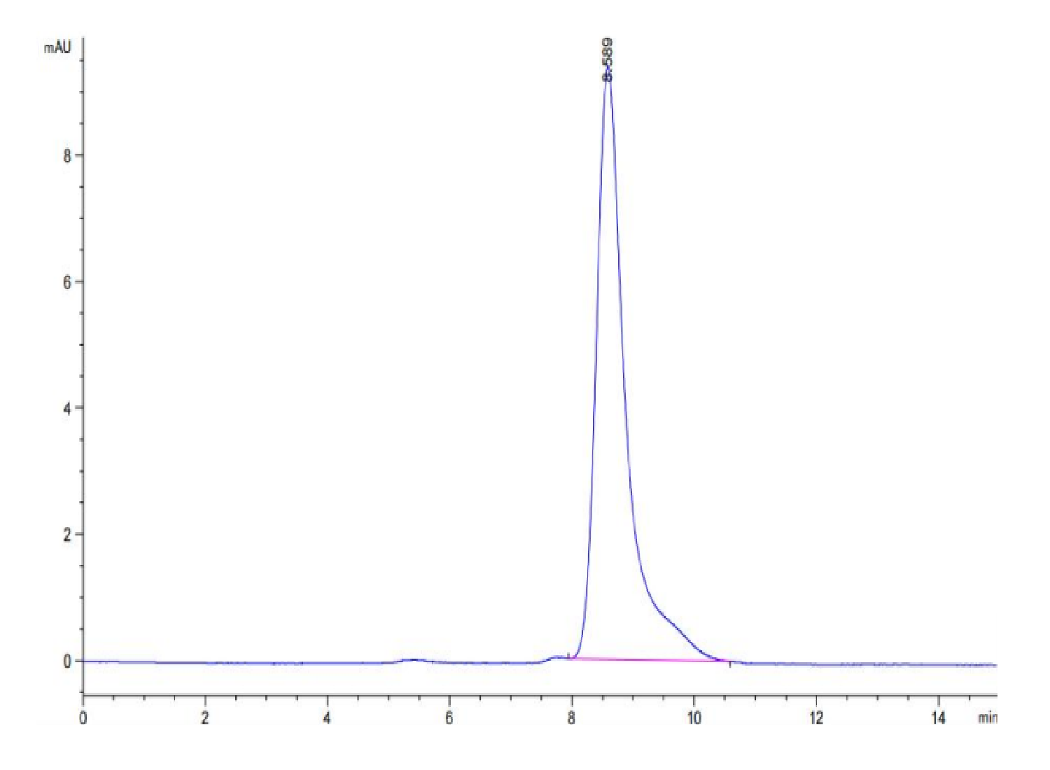 The protein has a predicted MW of 18.40 kDa. Due to glycosylation, the protein migrates to 23-28 kDa based on Bis-Tris PAGE result.