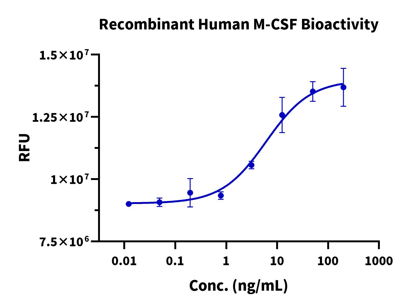 Recombinant Human M-CSF/CSF-1 Protein is expressed from HEK293 without tag.It contains Glu33-Asn190 [Accession | P09603-1].