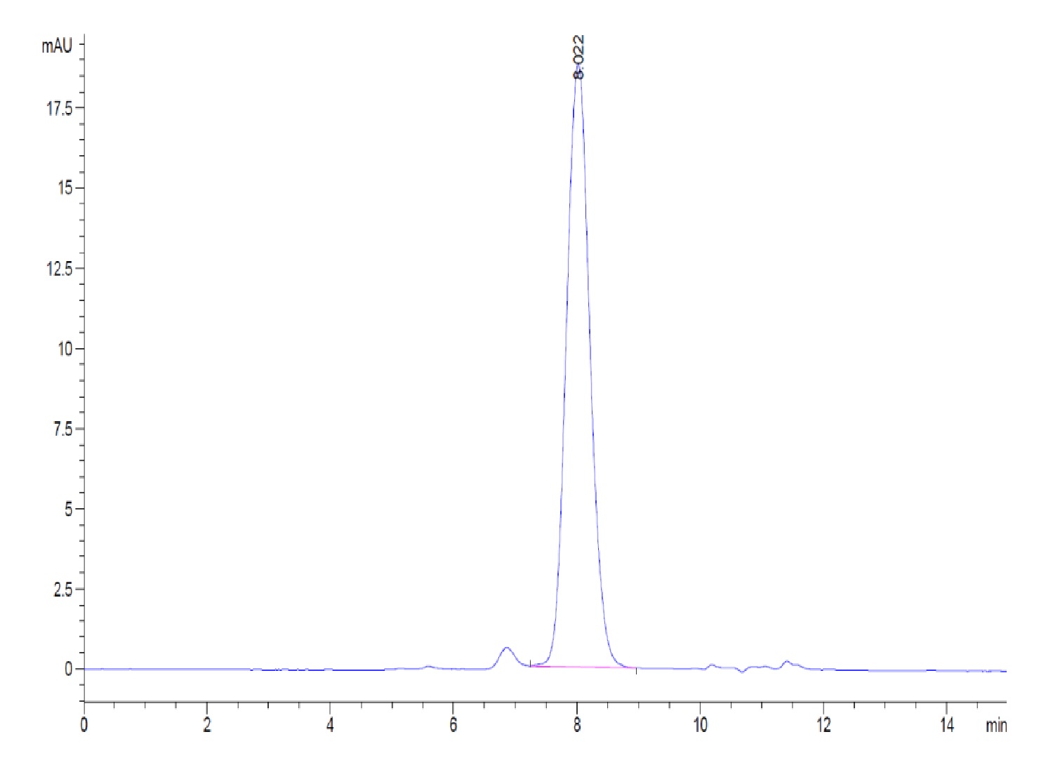 The protein has a predicted MW of 16.3 kDa. Due to glycosylation, the protein migrates to 25-30 kDa based on Bis-Tris PAGE result.