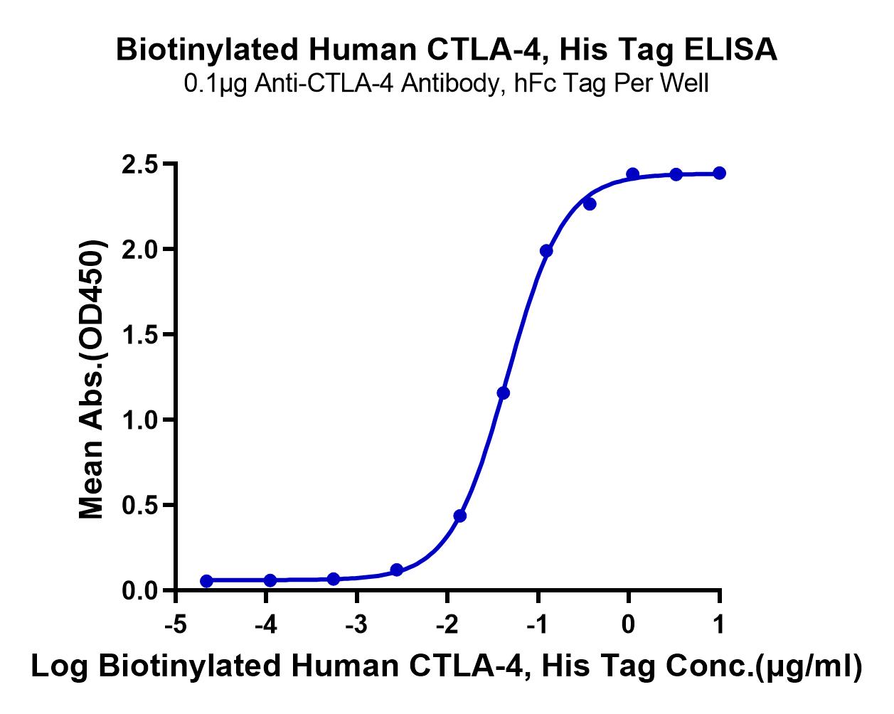 Recombinant Biotinylated Human CTLA-4 Protein is expressed from HEK293 with His tag and Avi tag at the C-Terminus.It contains Lys36-Asp161 [Accession | P16410].