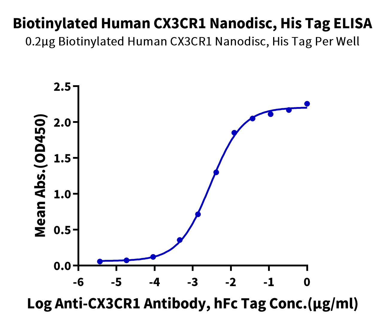Recombinant Biotinylated Human CX3CR1 Nanodisc is expressed from HEK293 with His tag at the C-terminus.It contains Met1-Leu355 [Accession | P49238-1].