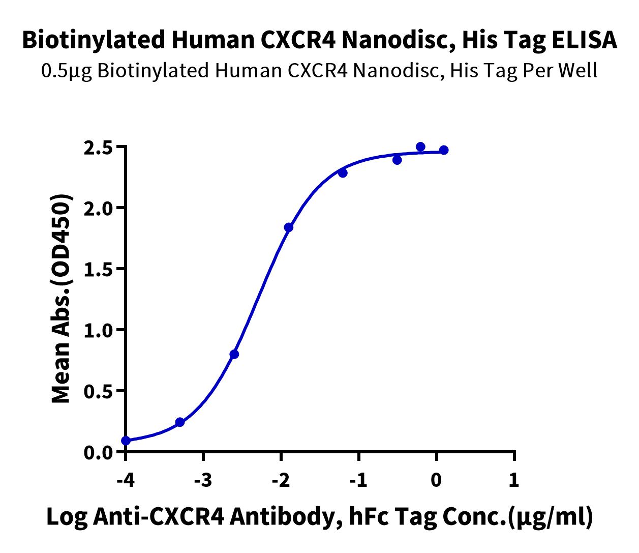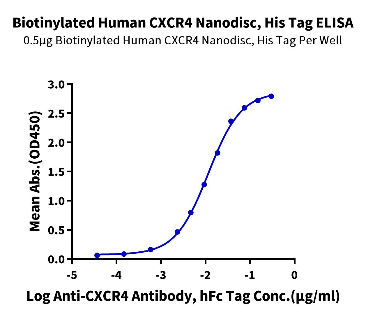 Recombinant Biotinylated Human CXCR4 Nanodisc is expressed from HEK293 with His tag at the C-terminus.It contains Met1-Ser352 [Accession | P61073-1].