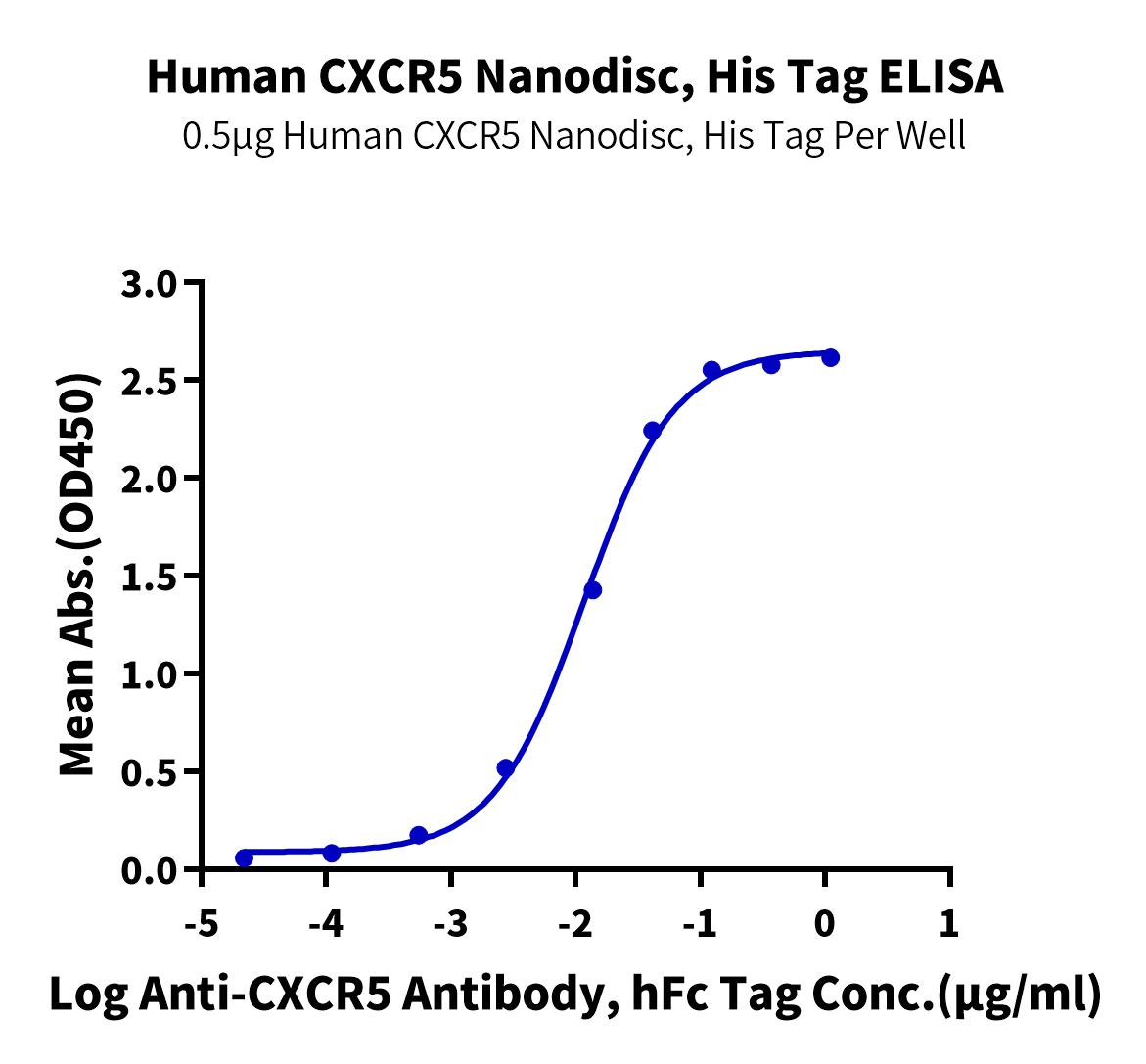 Recombinant Human CXCR5 Nanodisc is expressed from HEK293 with His tag at the C-terminus (FITC-equivalent protein is fused on cytoplasmic part).It contains Met1-Phe372 [Accession | P32302-1].
