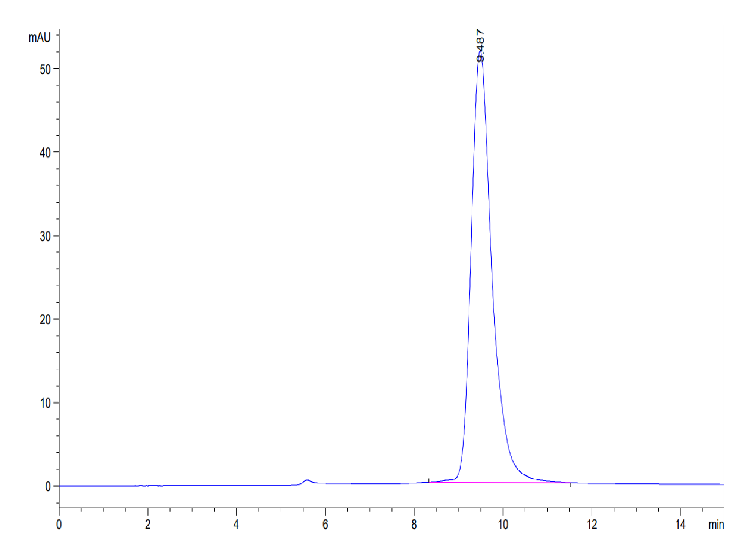 The protein has a predicted MW of 22 kDa. Due to glycosylation, the protein migrates to 32-43 kDa based on Bis-Tris PAGE result.