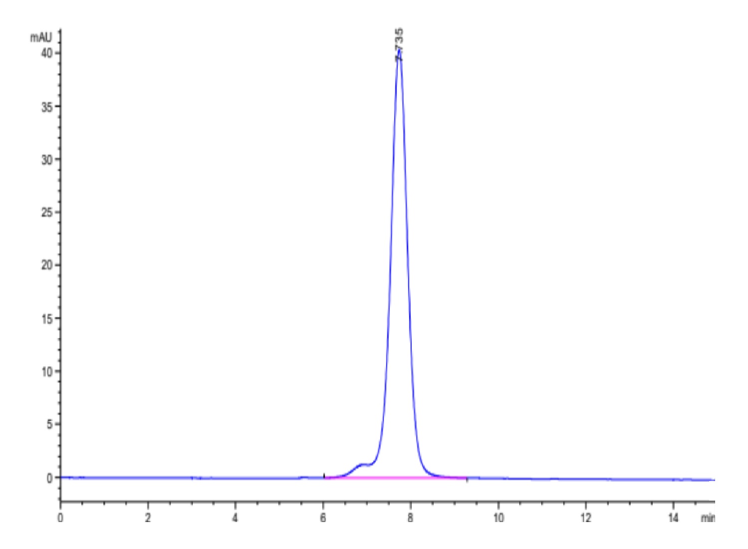 The protein has a predicted MW of 47.7 kDa. Due to glycosylation, the protein migrates to 68-72 kDa based on Bis-Tris PAGE result.