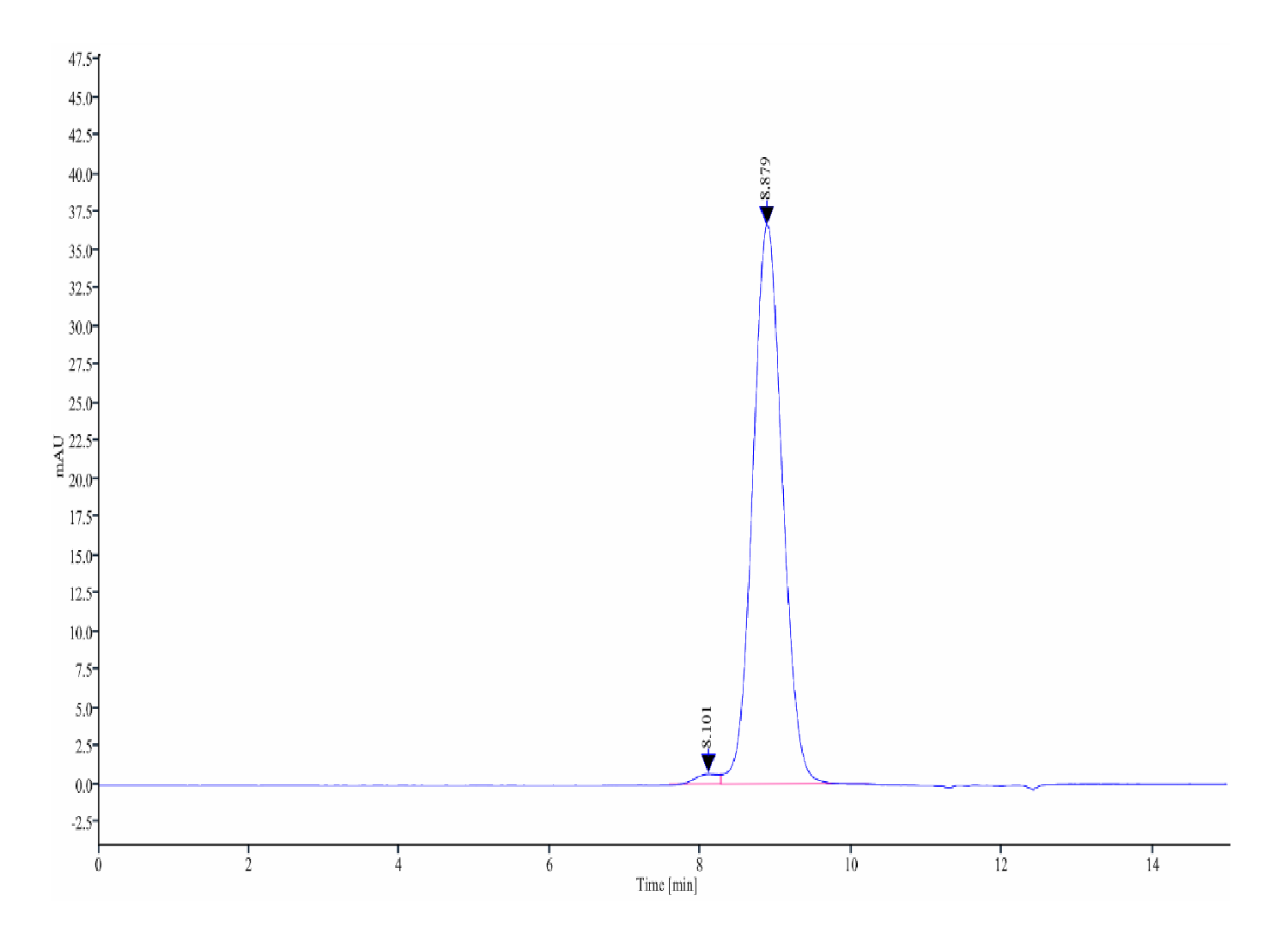 The protein has a predicted MW of 26.2 kDa. Due to glycosylation, the protein migrates to 50-68 kDa based on Bis-Tris PAGE result. |