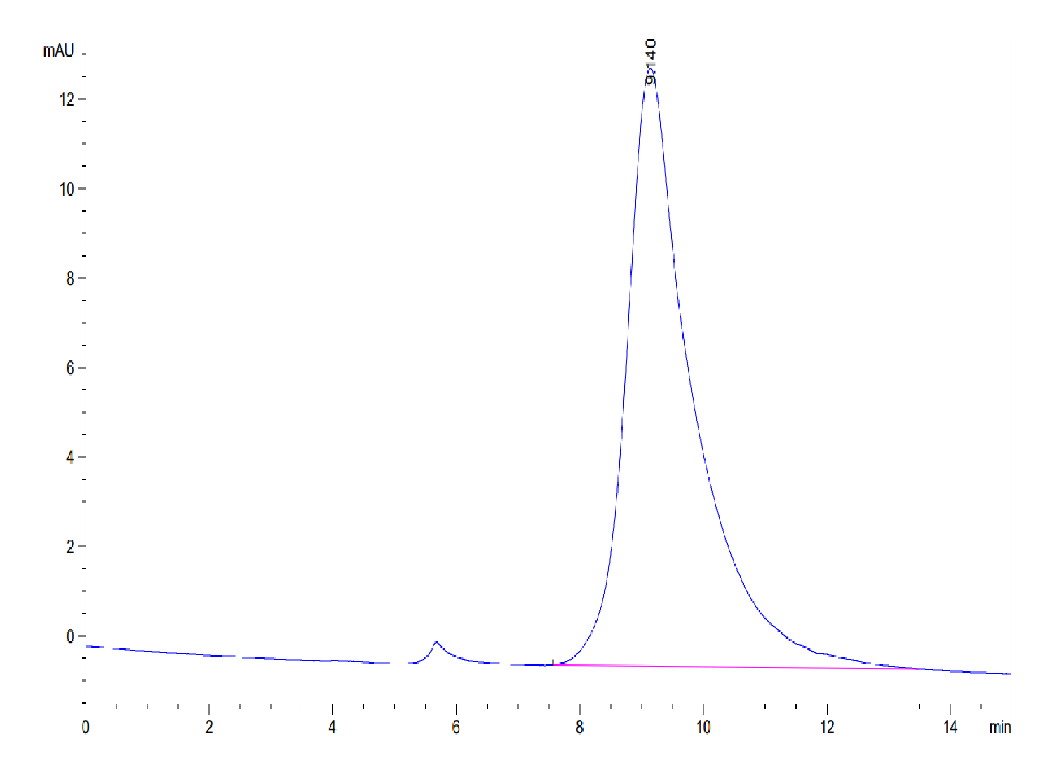 The protein has a predicted MW of 26.2 kDa. Due to glycosylation, the protein migrates to 50-68 kDa based on Bis-Tris PAGE result.
