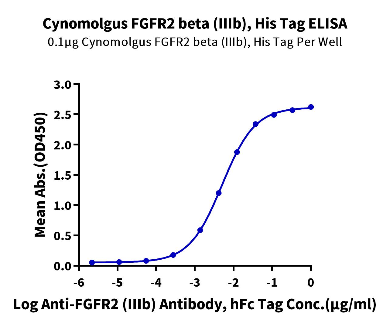 Recombinant Cynomolgus FGFR2 beta (IIIb) Protein is expressed from HEK293 with His tag at the C-Terminus.It contains Pro154-Lys368 [Accession | A0A2K5TL84-1]. |
