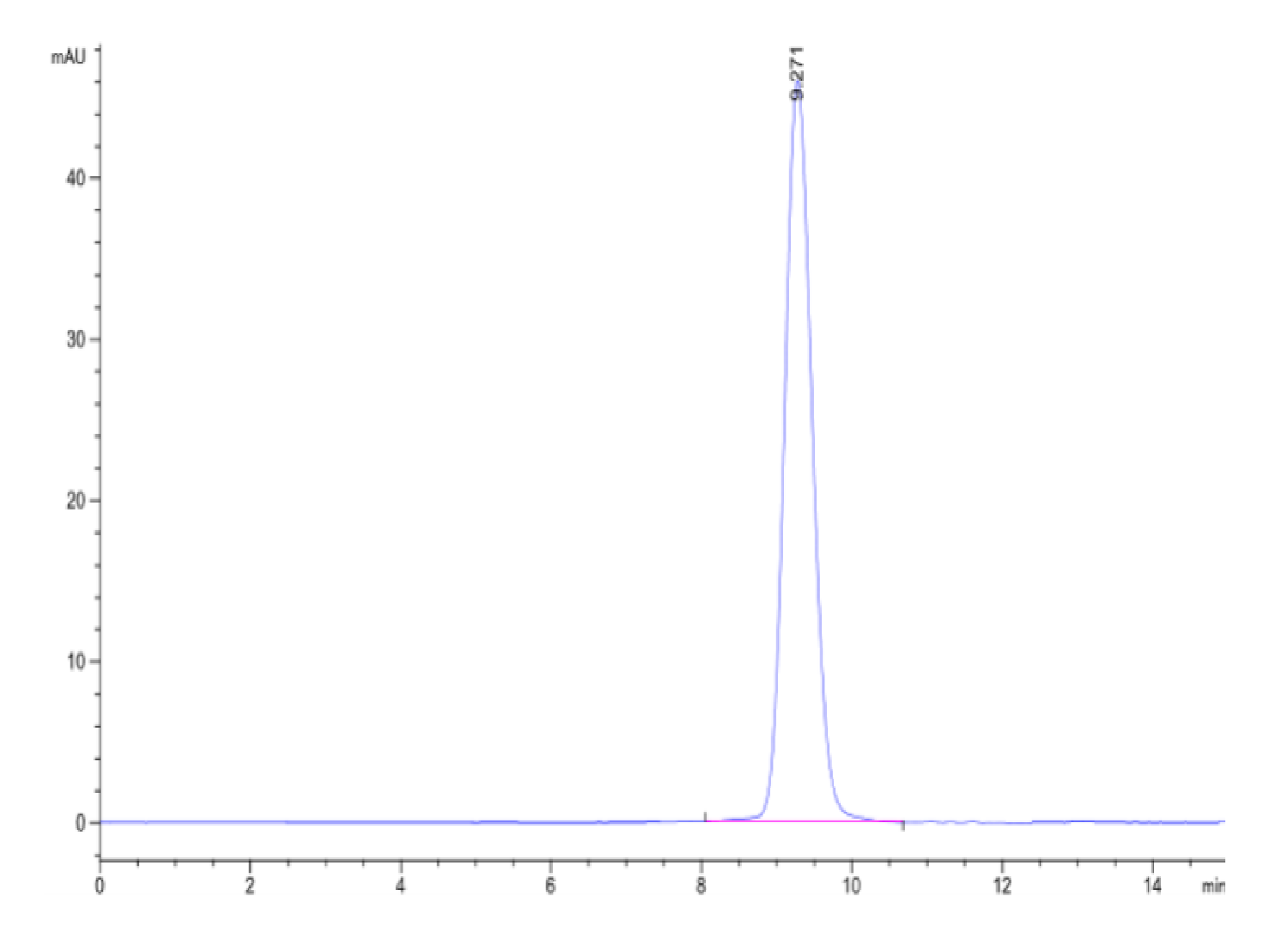 The protein has a predicted MW of 24.86 kDa. Due to glycosylation, the protein migrates to 42-52 kDa based on Bis-Tris PAGE result.
