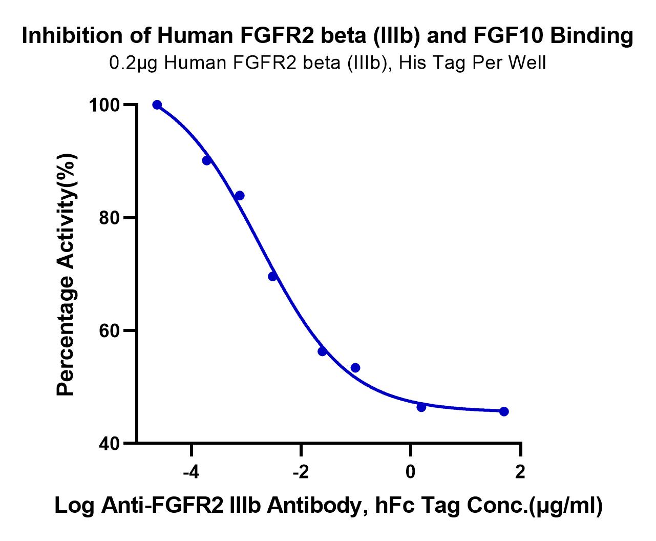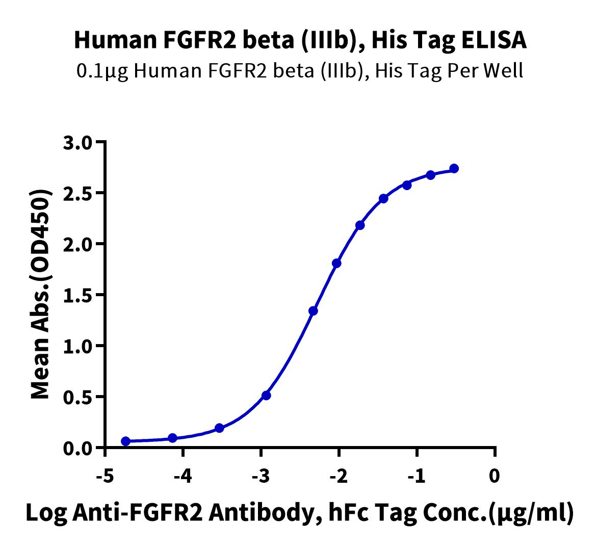 Recombinant Human FGFR2 beta (IIIb) Protein is expressed from HEK293 with His tag at the C-Terminus.It contains Arg152-Glu378 [Accession | P21802-3].