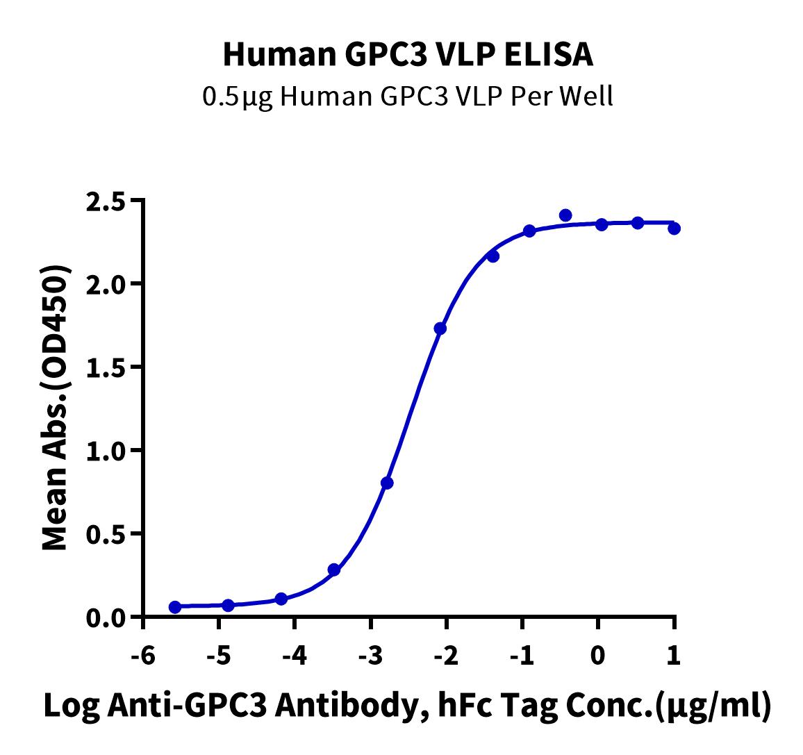 Recombinant Human GPC3 VLP is expressed from E.coli.It contains Gly510-Asn554 [Accession | P51654-1].