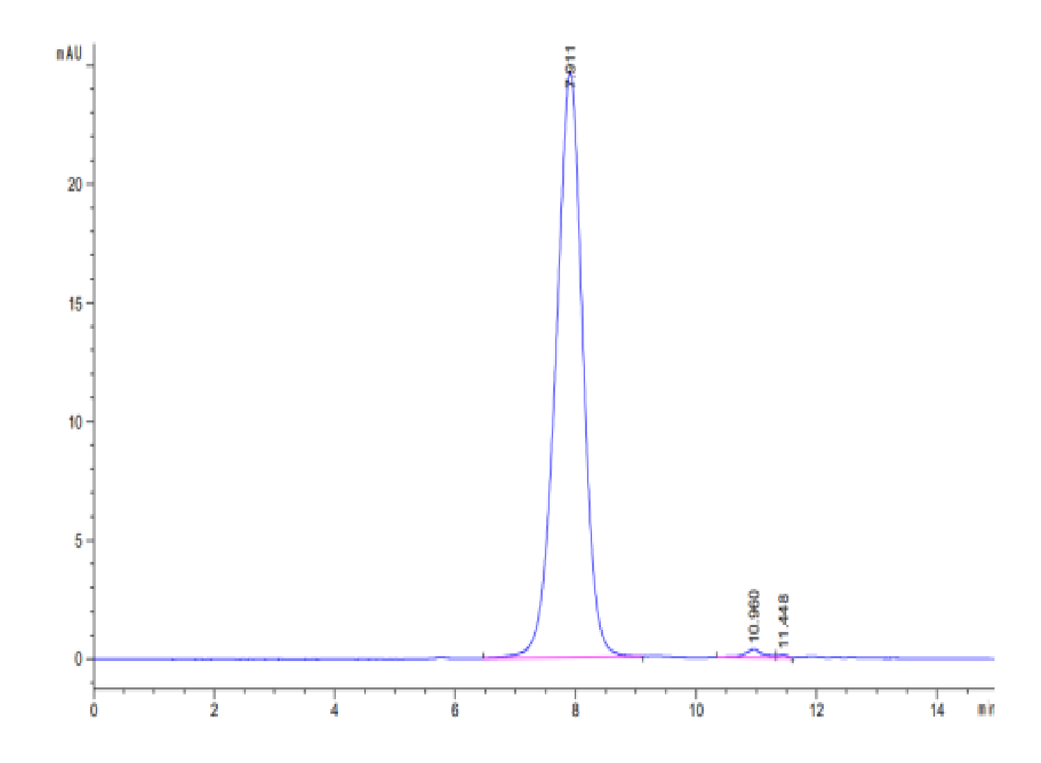 | The protein has a predicted MW of 76.11 kDa. Due to glycosylation, the protein migrates to 100-130 kDa based on Bis-Tris PAGE result. |
