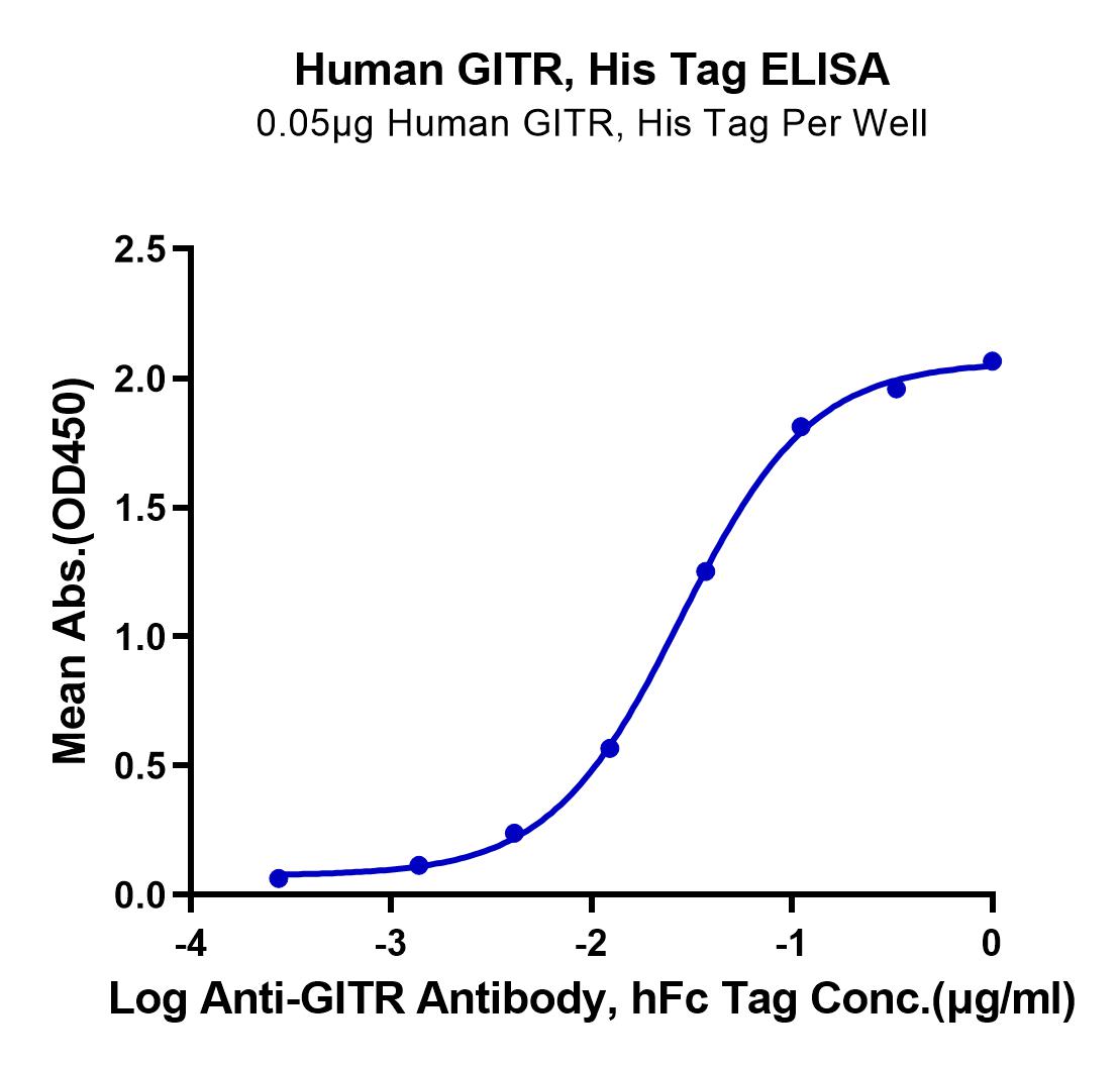Recombinant Human GITR/TNFRSF18 Protein is expressed from HEK293 with His tag at the C-Terminus.It contains Gln26-Glu161 [Accession | Q9Y5U5-1].