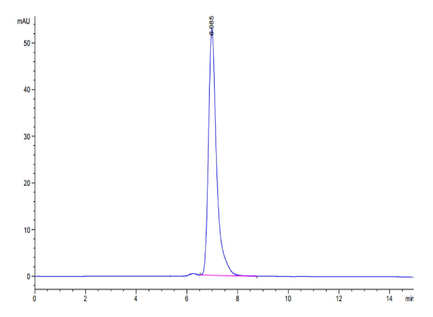 The protein has a predicted MW of 25.5 kDa. Due to glycosylation, the protein migrates to 31-33 kDa based on Bis-Tris PAGE result.