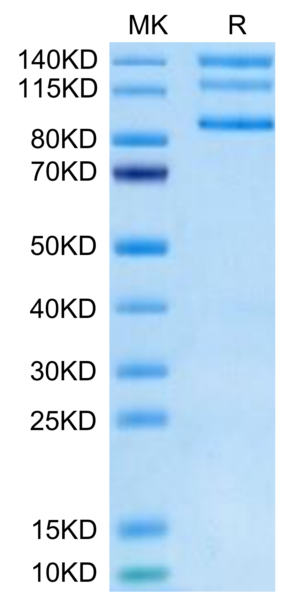 The protein has a predicted MW of 114 kDa (ITGAV) and 76 kDa (ITGB8). Due to glycosylation, the protein migrates to 85-145 kDa based on Bis-Tris PAGE result. |