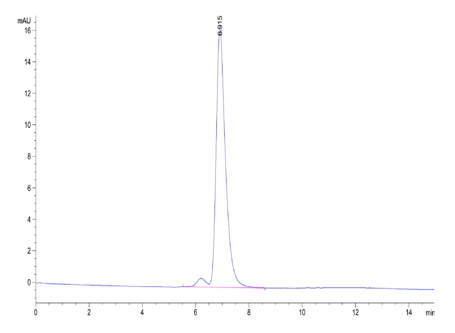 The protein has a predicted MW of 25.7 kDa. Due to glycosylation, the protein migrates to 30-40 kDa based on Bis-Tris PAGE result. |