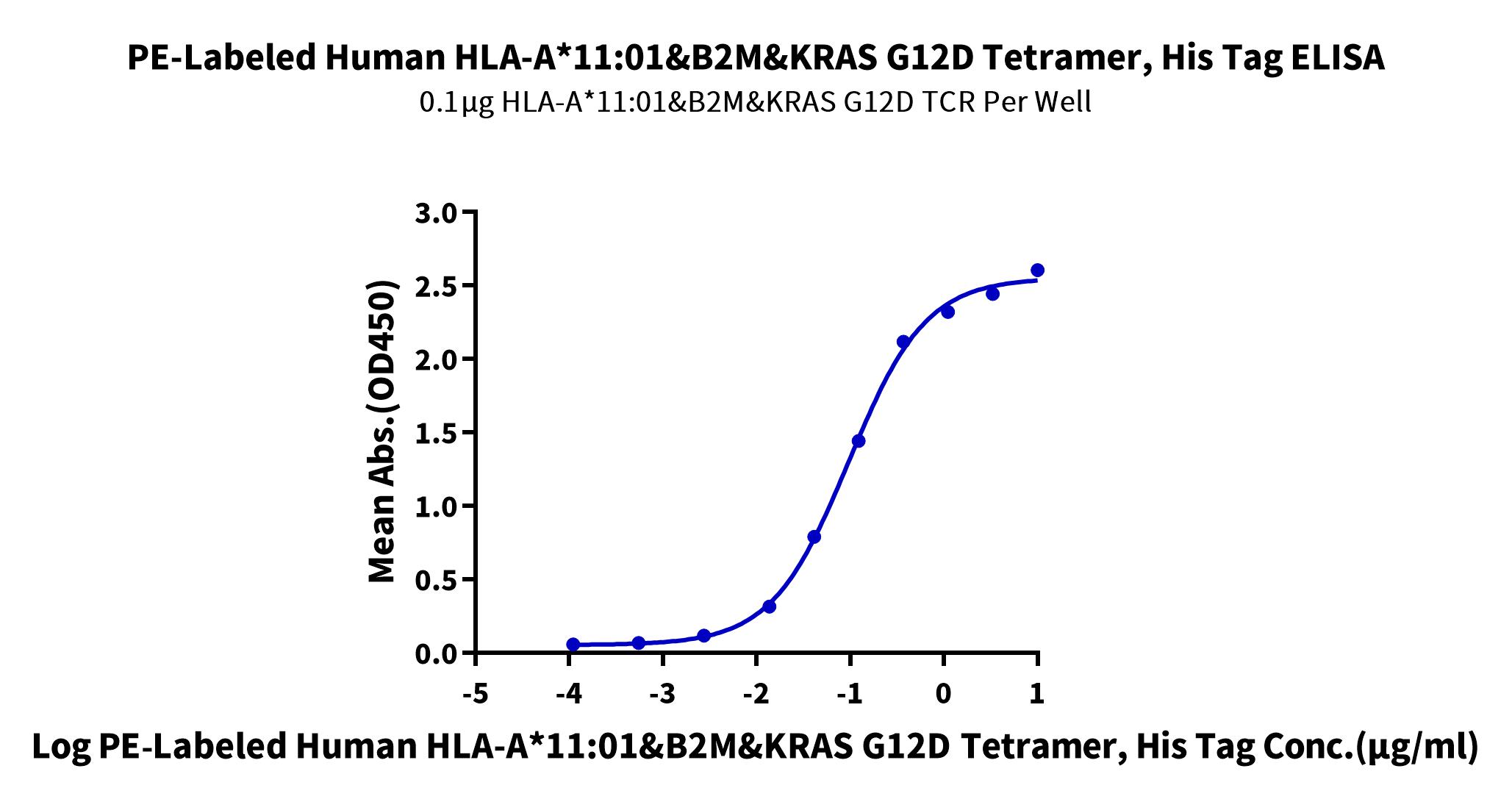 Recombinant PE-Labeled Human HLA-A*11:01&B2M&KRAS G12D (VVVGADGVGK) Tetramer Protein is expressed from HEK293 with His tag and Avi tag at the C-Terminus. PE-labeled Human HLA-A*11:01&B2M&KRAS G12D (VVVGADGVGK) Tetramer is assembled by biotinylated monomer and PE-Labeled streptavidin.It contains Gly25-Thr305(HLA-A*11:01), Ile21-Met119(B2M) and VVVGADGVGK peptide [Accession | AAV53343.1(HLA-A*11:01)&P61769(B2M)&VVVGADGVGK].