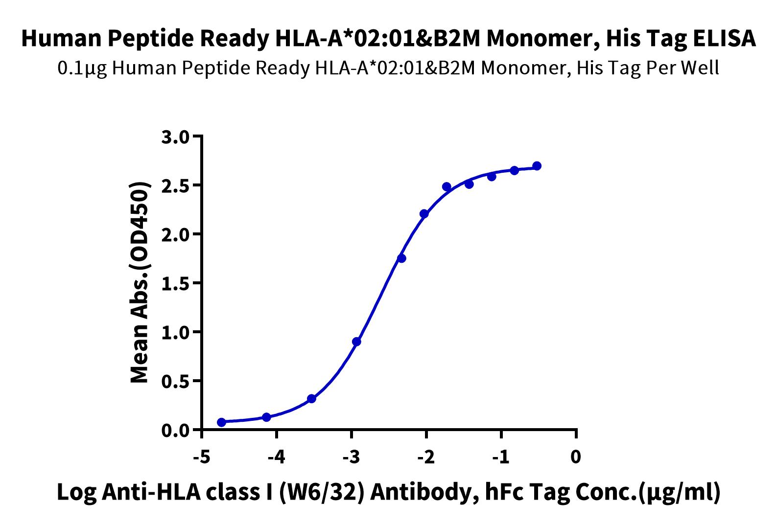 Peptide Ready HLA-A*02:01&B2M Monomer is absent from peptide, namely peptide-receptive MHC. It can be loaded with antigenic peptides matching HLA-A*02:01. Peptide ready MHC molecules comprising human HLA alleles and B2M, which can be readily tetramerized and loaded with peptides of choice in a high-throughput manner.