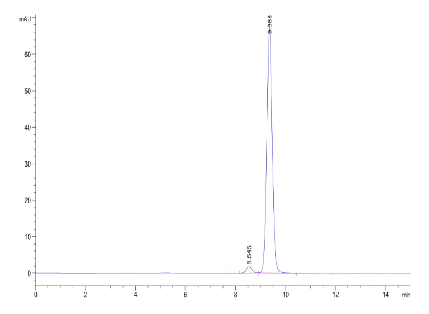 The protein has a predicted MW of 48.30 kDa. Due to glycosylation, the protein migrates to 50-60 kDa based on Bis-Tris PAGE result.
