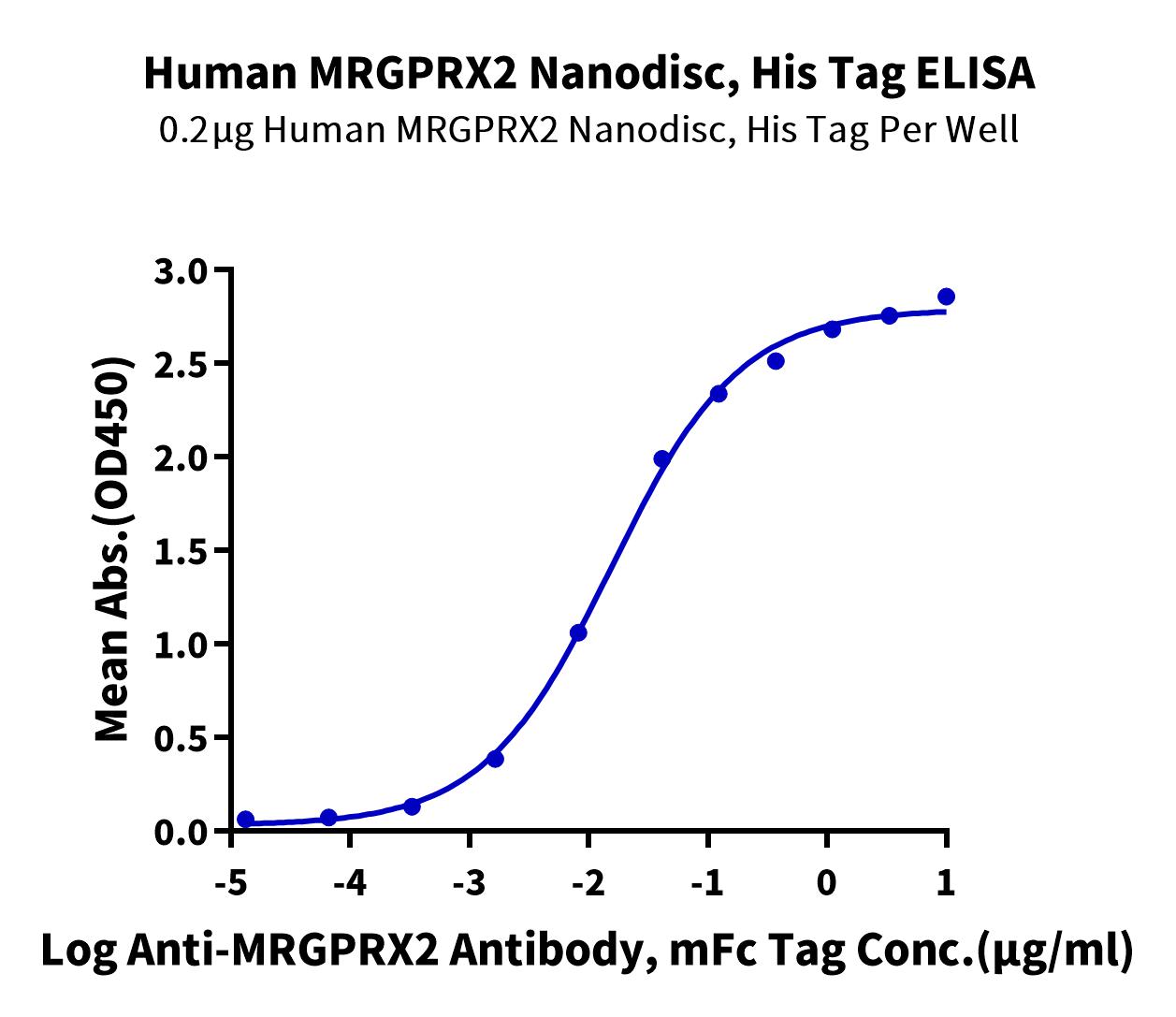 Recombinant Human MRGPRX2 Nanodisc is expressed from HEK293 with His tag at the C-terminus.It contains Met1-Val330 [Accession | Q96LB1]. |