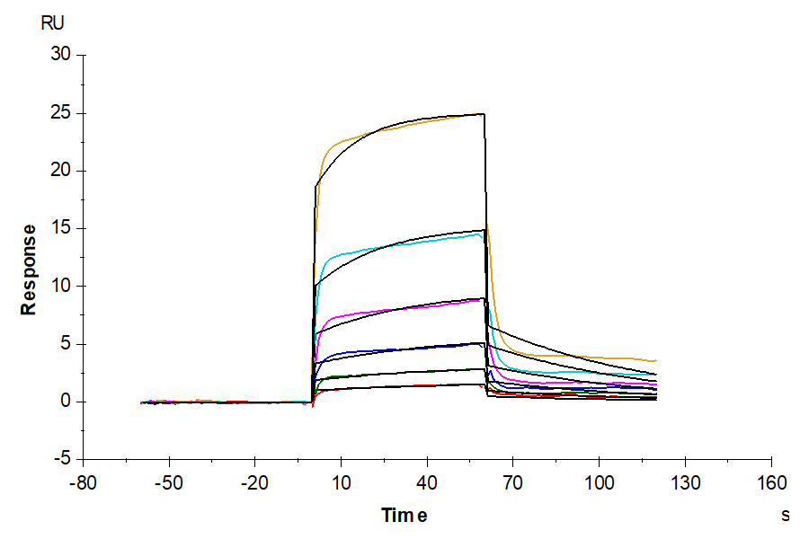 The protein has a predicted MW of 38.4 kDa. Due to glycosylation, the protein migrates to 45-52 kDa based on Bis-Tris PAGE result.