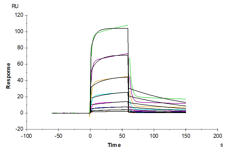 | The protein has a predicted MW of 39.8 kDa. Due to glycosylation, the protein migrates to 53-60 kDa based on Bis-Tris PAGE result. |