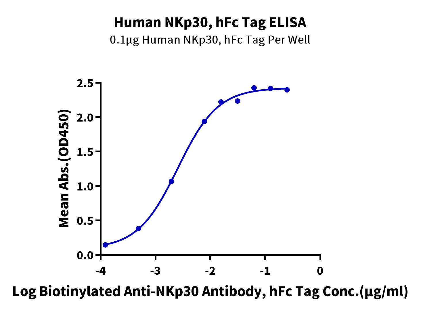 Recombinant Human NKp30/NCR3/CD337 Protein is expressed from HEK293 with hFc tag at the C-Terminus.It contains Leu19-Thr138 [Accession | AAH52582].