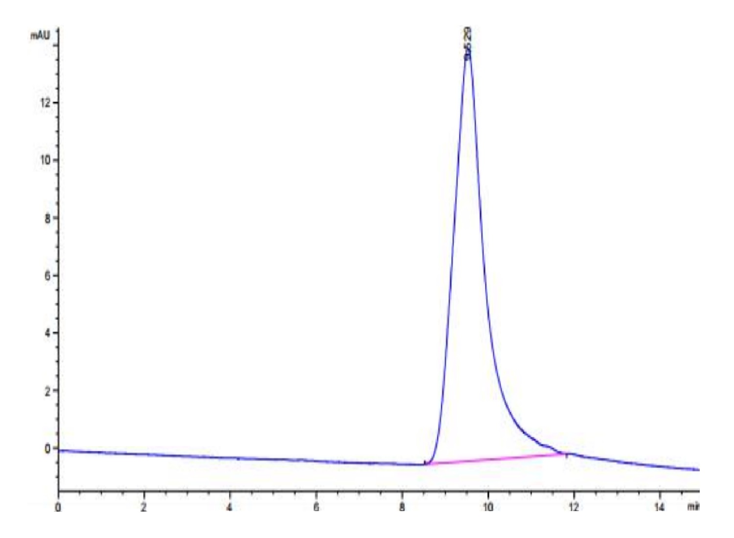 The protein has a predicted MW of 23.05 kDa. Due to glycosylation, the protein migrates to 30-36 kDa based on Bis-Tris PAGE result.