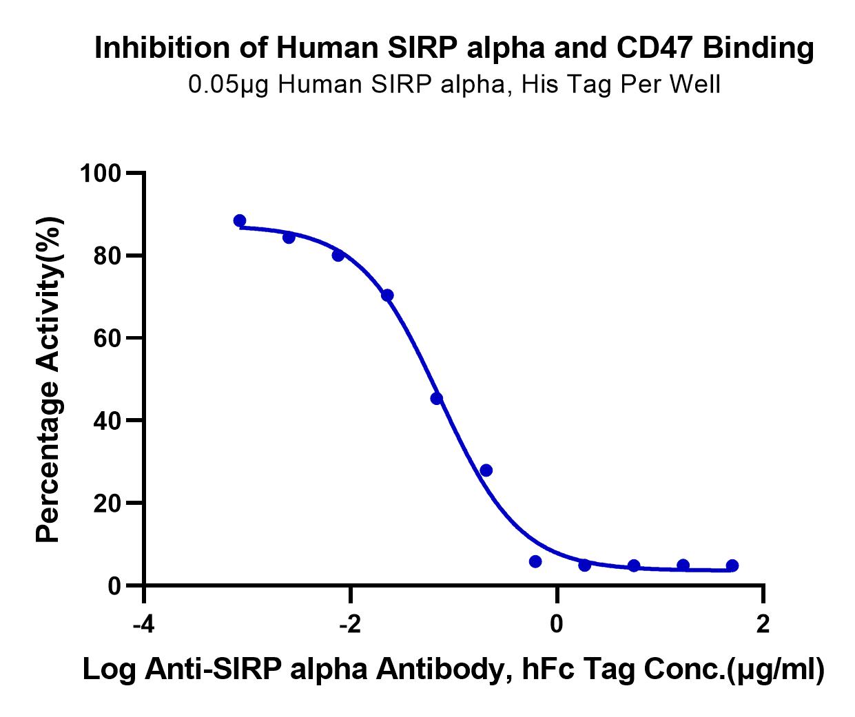 Recombinant Human SIRP alpha/CD172a Protein is expressed from HEK293 with His tag at the C-Terminus.It contains Glu31-Arg370 [Accession | P78324-1].