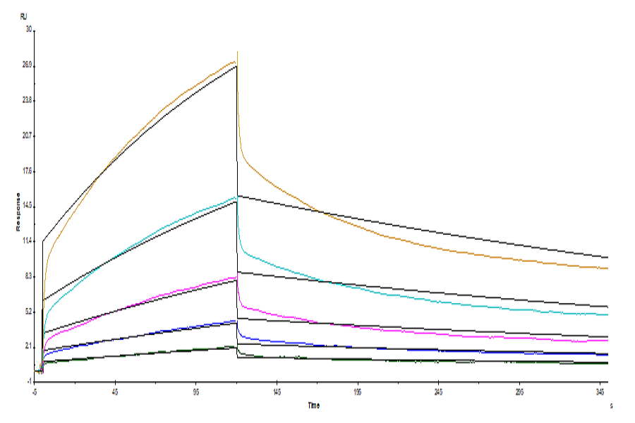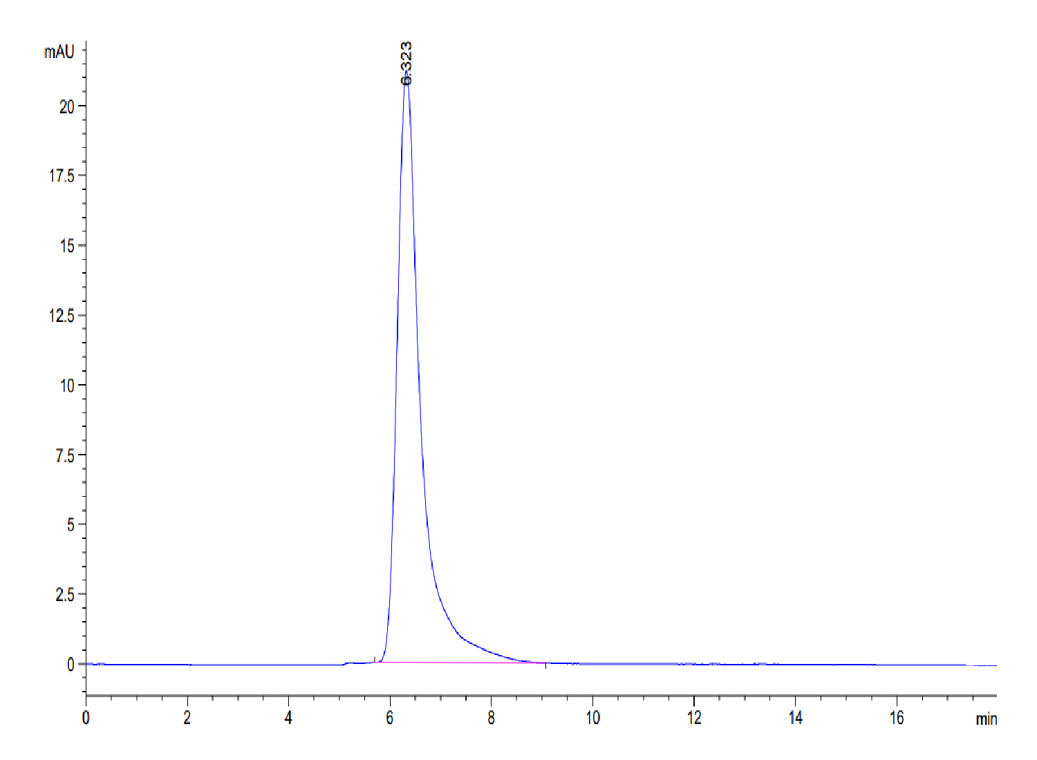 The protein has a predicted MW of 38.1 kDa. Due to glycosylation, the protein migrates to 50-65 kDa based on Bis-Tris PAGE result.