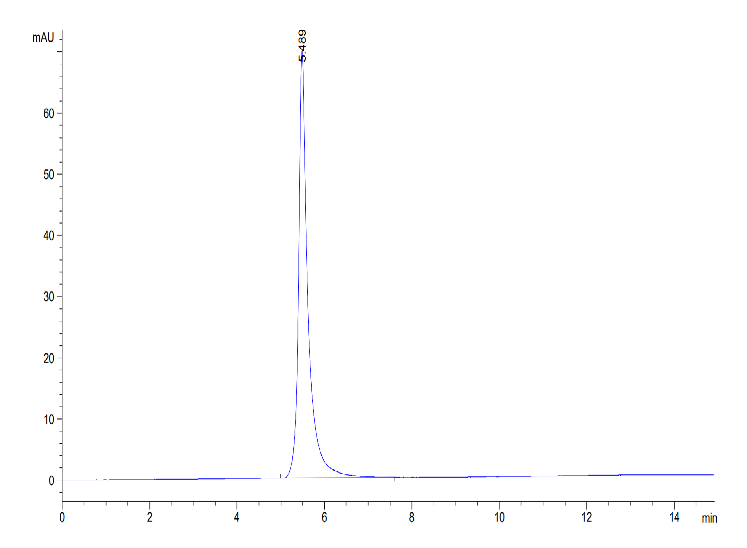 The protein has a predicted MW of 64.1 kDa. Due to glycosylation, the protein migrates to 78-90 kDa based on Bis-Tris PAGE result.