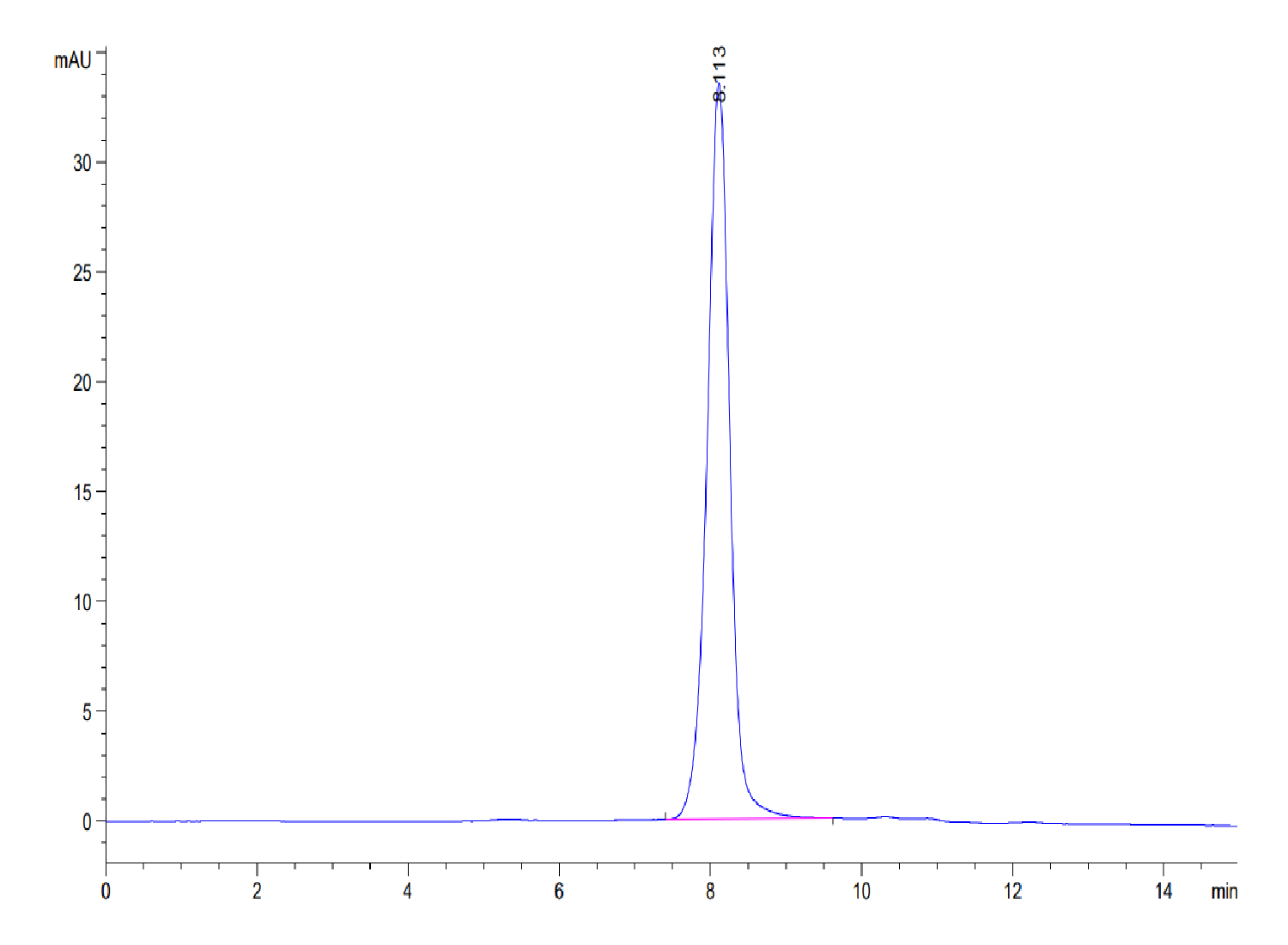 The protein has a predicted MW of 40 kDa. Due to glycosylation, the protein migrates to 55-65 kDa based on Bis-Tris PAGE result.